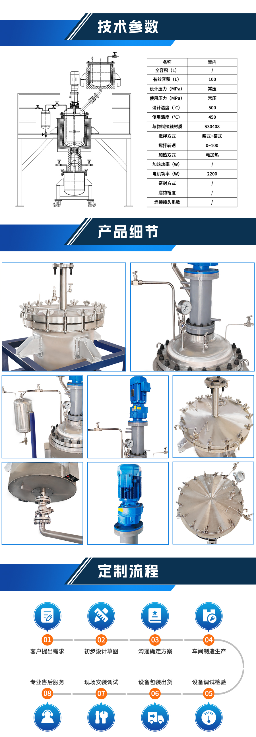 不銹鋼高溫反應(yīng)釜 - 非標(biāo)定制參數(shù)