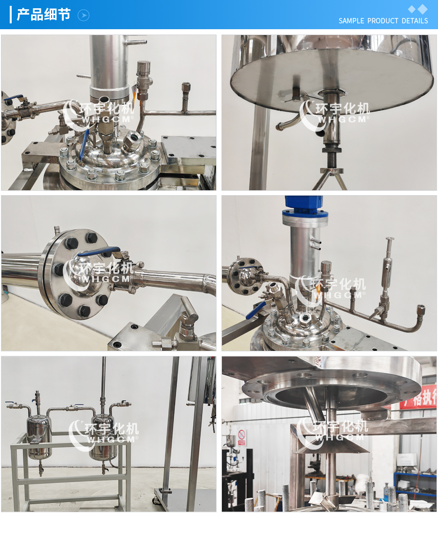 其他附件 如果用戶在釜蓋、釜體開口、內(nèi)部結(jié)構(gòu)、壓力高低、攪拌槳葉、及增加其他輔助裝置(如冷凝回流裝置、冷凝器、恒壓加料罐、接收裝置)等有特殊要求,可完全按用戶的要求加工制造