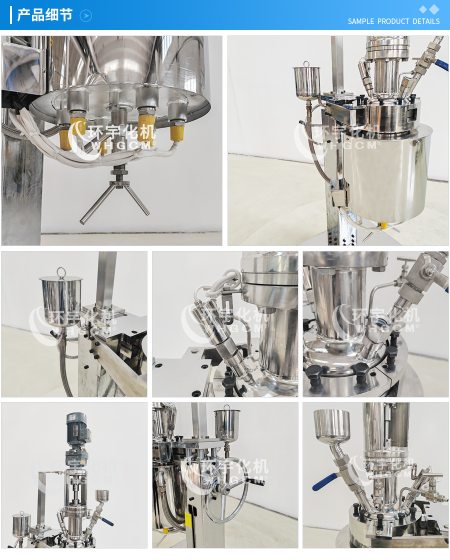 其他附件 如果用戶在釜蓋、釜體開口、內(nèi)部結(jié)構(gòu)、壓力高低、攪拌槳葉、及增加其他輔助裝置(如冷凝回流裝置、冷凝器、恒壓加料罐、接收裝置)等有特殊要求,可完全按用戶的要求加工制造