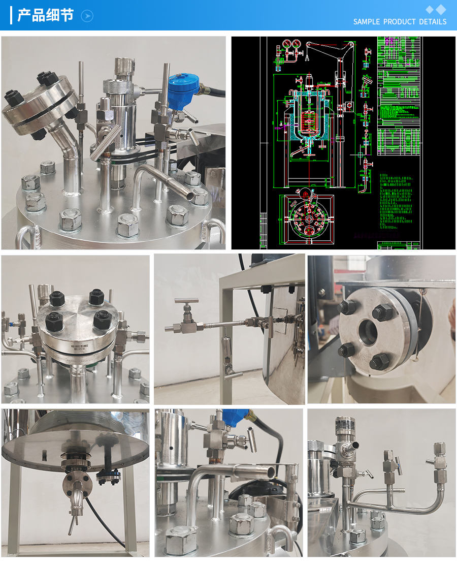 其他附件 如果用戶在釜蓋、釜體開口、內(nèi)部結(jié)構(gòu)、壓力高低、攪拌槳葉、及增加其他輔助裝置(如冷凝回流裝置、冷凝器、恒壓加料罐、接收裝置)等有特殊要求,可完全按用戶的要求加工制造